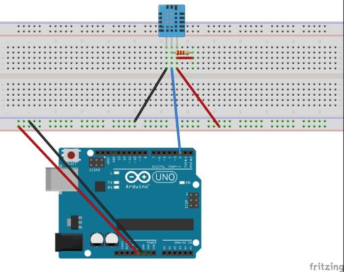 わたしの場合はArduinoの2番PinにDHT11のData端子が入るようにしました。