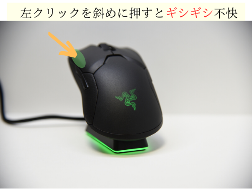 まずは上の図のように、今回説明するのは左クリックのギシギシ音と、不快な感触です。