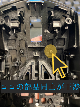 ↑の写真のように、私の場合は黄色く色づけしたところが干渉していたポイントです。